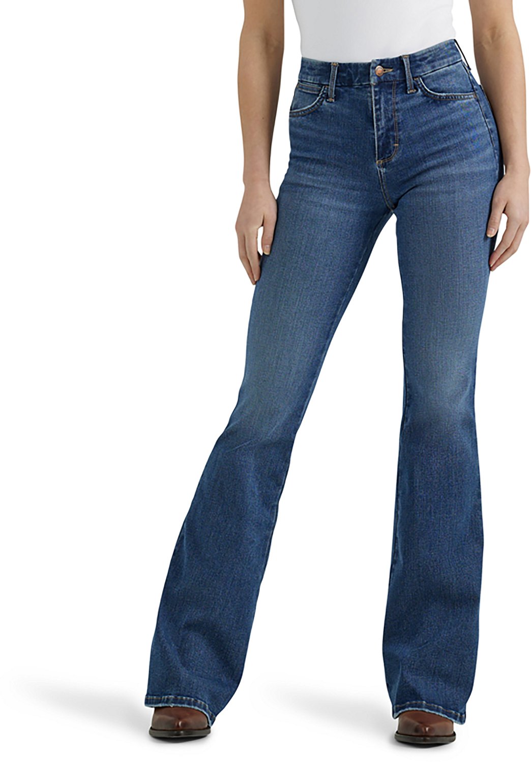 Look your best when you wear the Wrangler Women's Bespoke High Rise Flare Jeans. They are made of 72% cotton, 23% polyester, and 5% Lycra. The high rise creates a flattering fit, and their flare legs provide flexible styling. The zip-fly with button closure provides a secure fit.