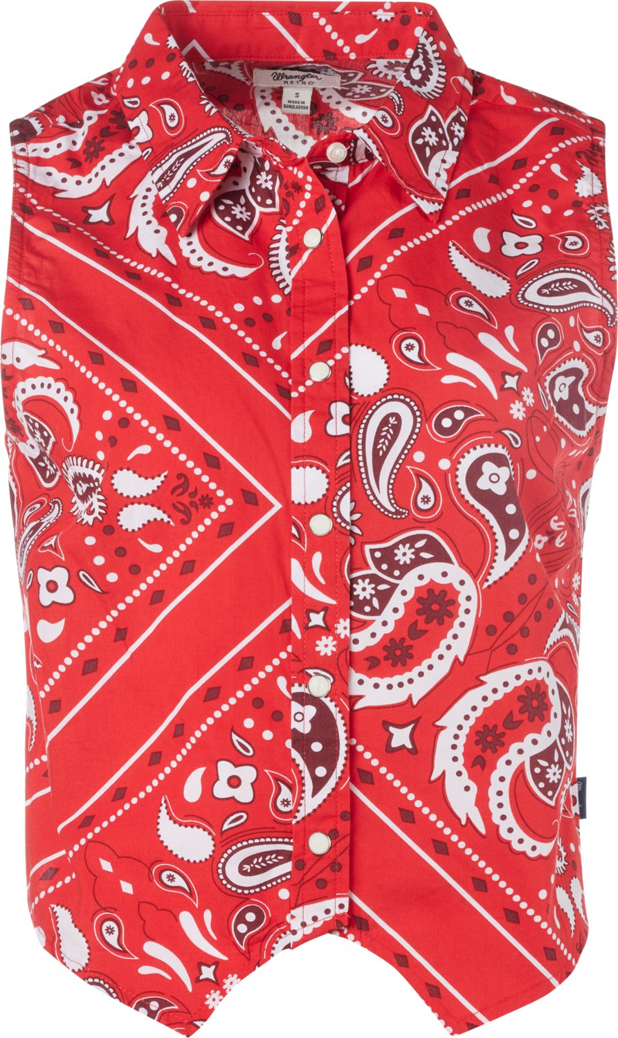 Look your best when you wear the Wrangler Women's Sleeveless Snap Vest Top. It is made of 100% cotton. The sleeveless design keeps you cool, and its collar neck adds a more formal touch. The snap button closures provide a secure fit.