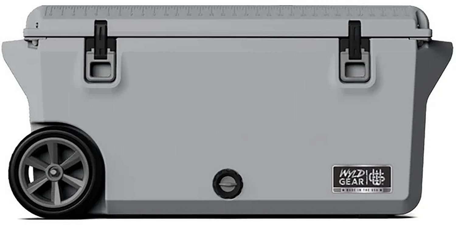 When you spend time in wild places, you need gear that's up to the task. The made-in-America Wyld Gear Freedom Series 75-Qt. Divided Hard Cooler delivers the rugged dependability you need and the cold-keeping power you want. Featuring a rotationally-molded construction. Bolted-on Ultra Grip rubber feet mean this cooler stays planted where you want it, and when it's time to move, you'll appreciate the solid rubber all-terrain wheels and built-in folding tow handle that make moving a fully loaded cooler a breeze. This bear-resistant cooler boasts Dura-Latch closures that are padlock-compatible, keeping the lid shut and holding the cold in. Integrated bottle openers provide extra convenience, as does the beverage-tap and drainage system. An embossed ruler on the lid is added for your fishing convenience. When you need to keep food and drinks for the long haul, you can depend on the Wyld Gear Freedom Series 75-Qt. Hard Cooler. Made in USA.