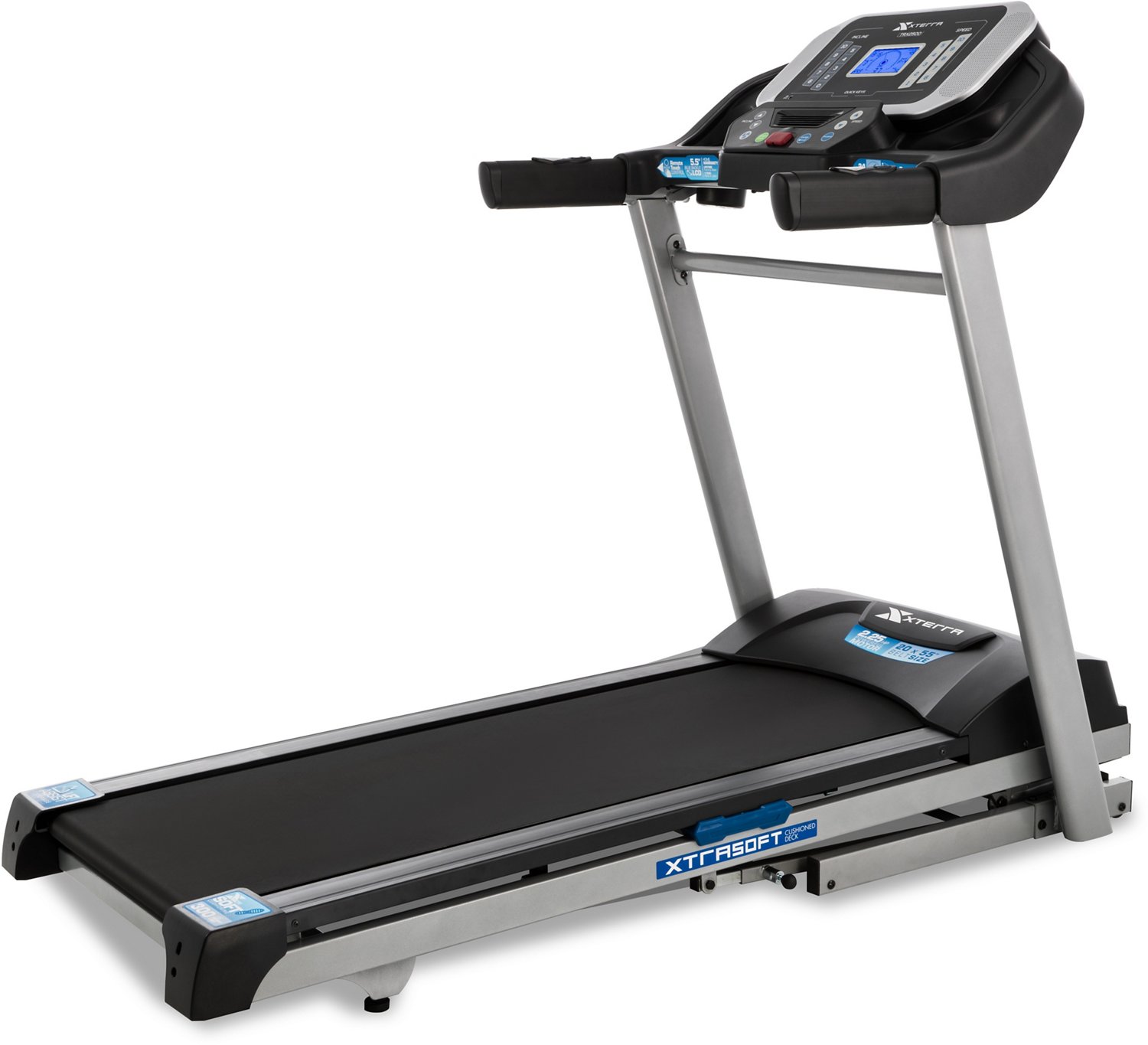 Working out from home is easy with the XTERRA TRX2500 Folding Treadmill. It's packed with plenty of convenience features, including accessory holders, easy-access buttons, a cooling fan and an audio port, to help you stay motivated and comfortable. An LCD screen tracks your progress and provides 24 preset workouts to help people of all fitness levels get started. A quiet motor, transport wheels and foldable design make this machine ideal for at-home use.