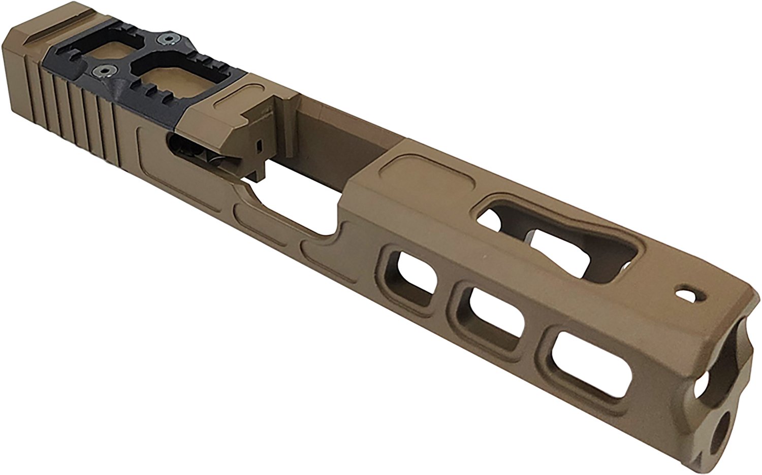 Accessorize your firearm with the XTS (Xtreme Tactical Sports) G19 Gen 3 RMR Cut Slide. Its RMR optic cut, Cerakote finish, and lowered ejection port boost performance, cycle rate, and muzzle control for Glock 19 Gen 1-3. The top and side ports reduce weight and improve ventilation for rapid fire and binary systems, and its front and rear slide serrations give you a better grip for press checks, racking, and malfunction clearing, even with gloves or moisture. The beveled front edges let you holster smoothly and draw faster.