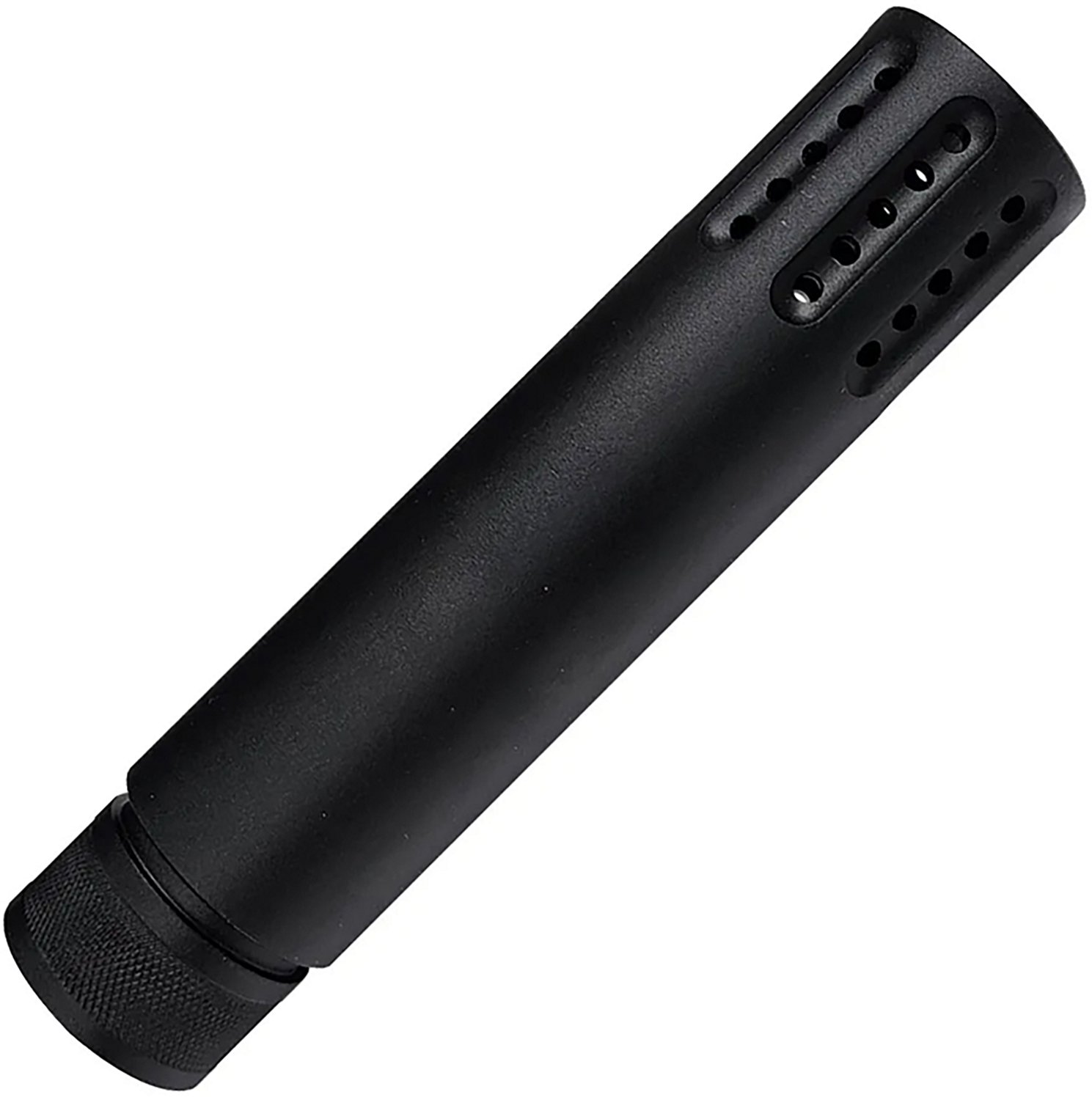 Equip your gun with the XTS Tactical Fake Suppressor/Flash Hider. Constructed from durable aluminum, the Flash Hider threads directly onto/over your muzzle, giving you a functional flash hider.