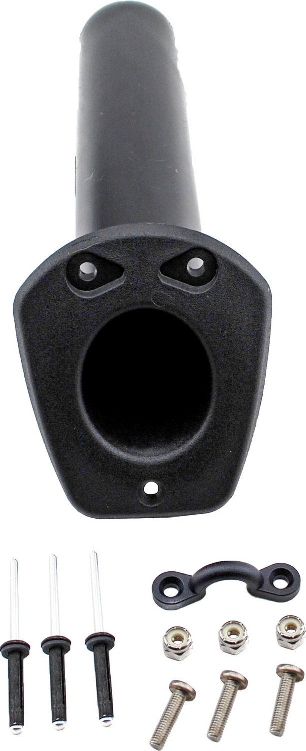 The Yak-Gear™ Flush-Mount Rod Holder is a great addition to your boat or kayak for a relaxing day out on the water. The rod holder features nylon construction and an integrated Pad Eye to attach a leash to your fishing pole. 8-inch shaft with a built-in gimbal. Comes with aluminum trigrip rivets and stainless-steel hardware.