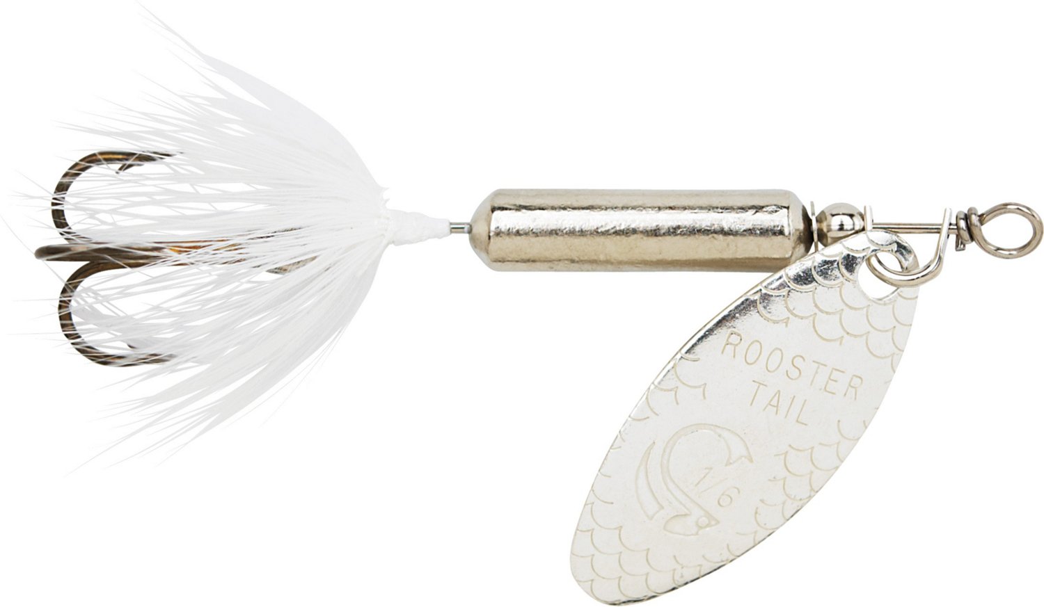 Great for anglers looking to catch gamefish, the Yakima Rooster Tail 1/16 oz. In-Line Spinner features a colorful, pulsating hackle tail and a spinning blade to entice fish to strike. Treble hook.