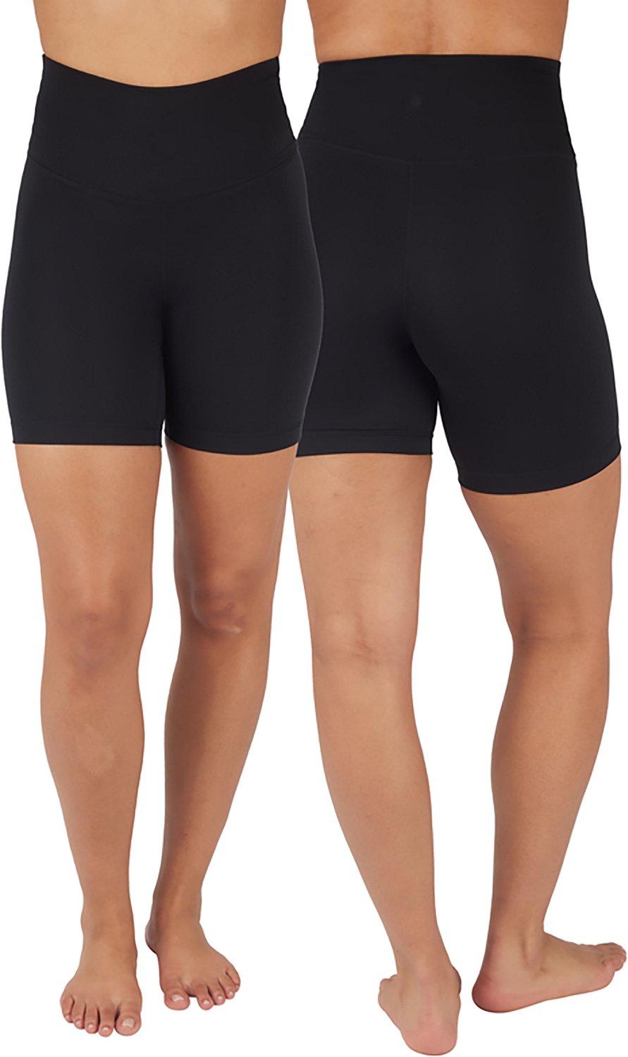 Obtain comfortable activewear with the Yogalicious Women's Lux High Waist Bike Shorts 7 in 2-Pack. The shorts are made of 83% polyester and 17% spandex for durability and a stretchy fit, and the fabric is moisture-wicking and quick-drying to help keep you comfortable while active. Includes 2 styles of Lux Bike Shorts.