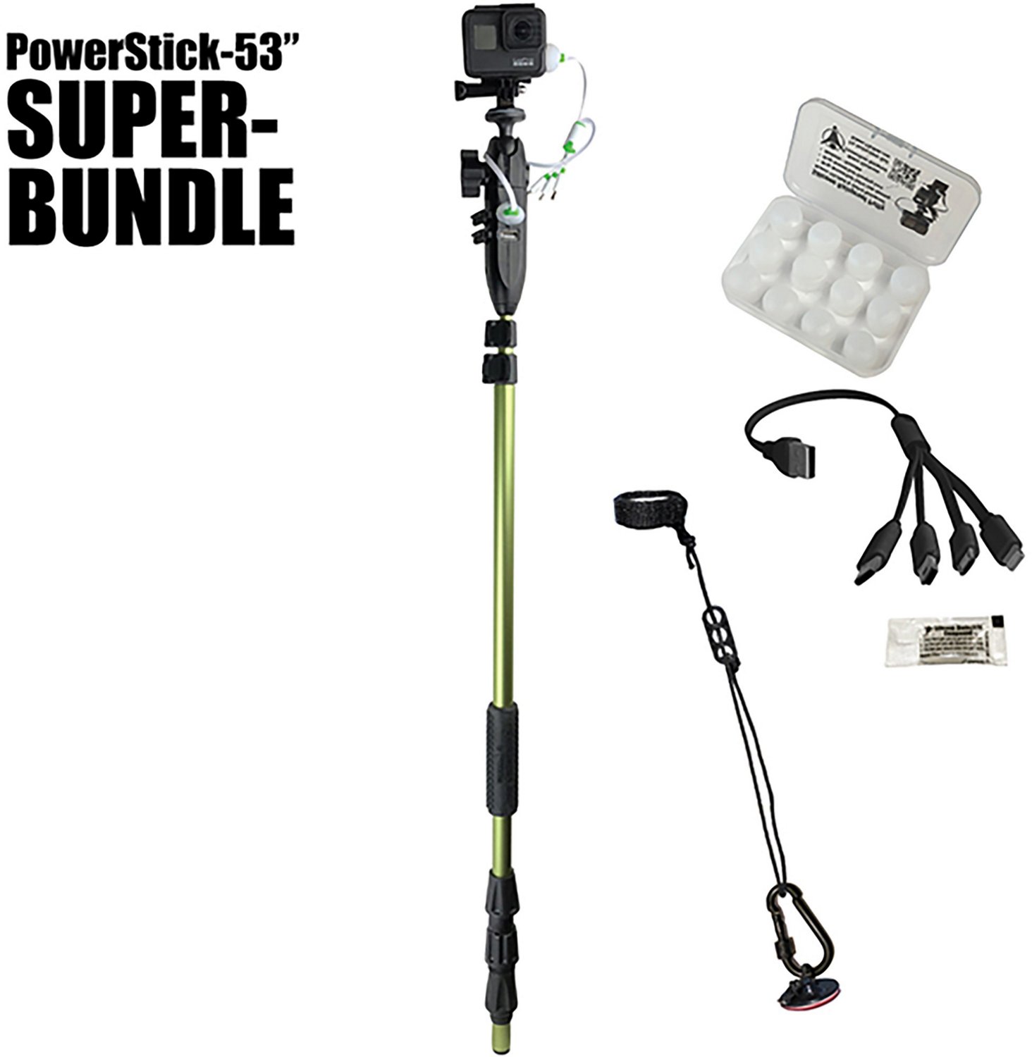 Mount your action camera with ease using the YOLOTek 53 in PowerStick Super Bundle. This mount is compatible with GoPro,Tactacam, DJI and most other brands of action camera. Its anodized aluminum construction stands up to use in rough environments, while the soft handle and telescoping design for ease of use.
