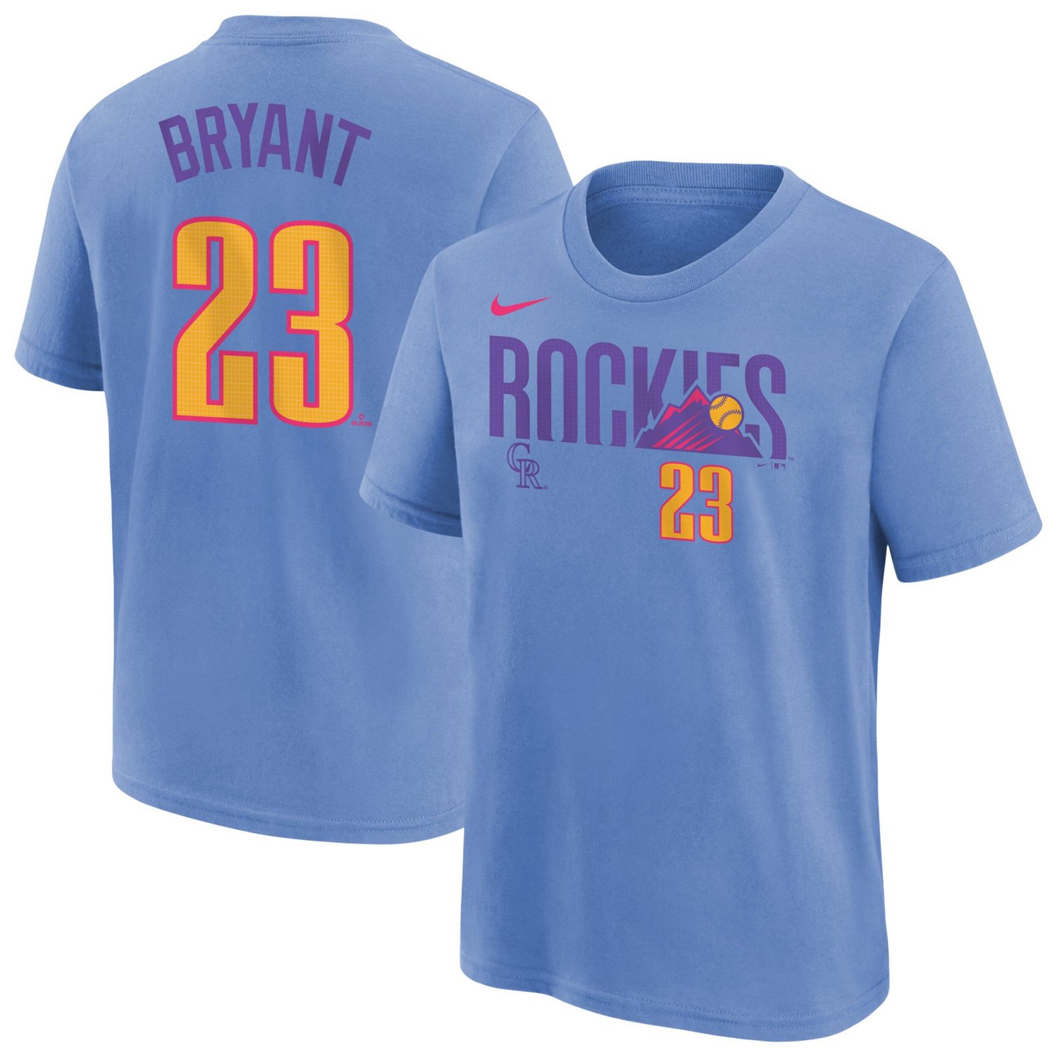 Get your young Colorado Rockies fan ready to rep the team in style with the Nike Kris Bryant Fuse City Connect Name Number T-Shirt This tee features printed graphics with Kris Bryant's name and number displayed on the back letting your young fan represent their favorite player in style Made with 100 cotton this comfortable tee is perfect for representing the Colorado Rockies at the ballpark or during any casual outing