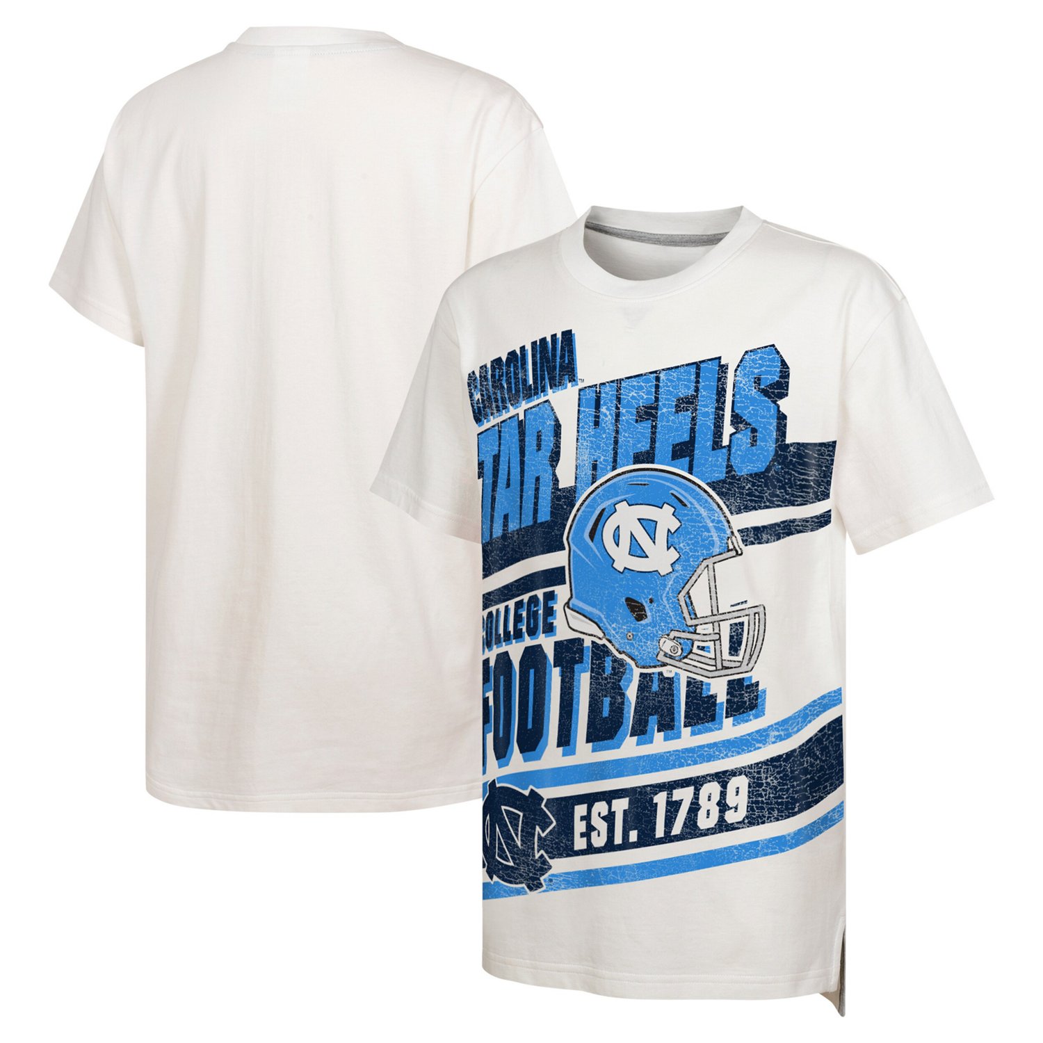 Get your young fan ready to cheer on the North Carolina Tar Heels with this Let's Get Loud Oversized T-Shirt from Outerstuff This oversized tee boasts a trendy relaxed fit and features distressed graphics for a vintage-inspired look that's sure to turn heads Made from 100 cotton it provides breathable comfort that's perfect for cheering on the Tar Heels all season long
