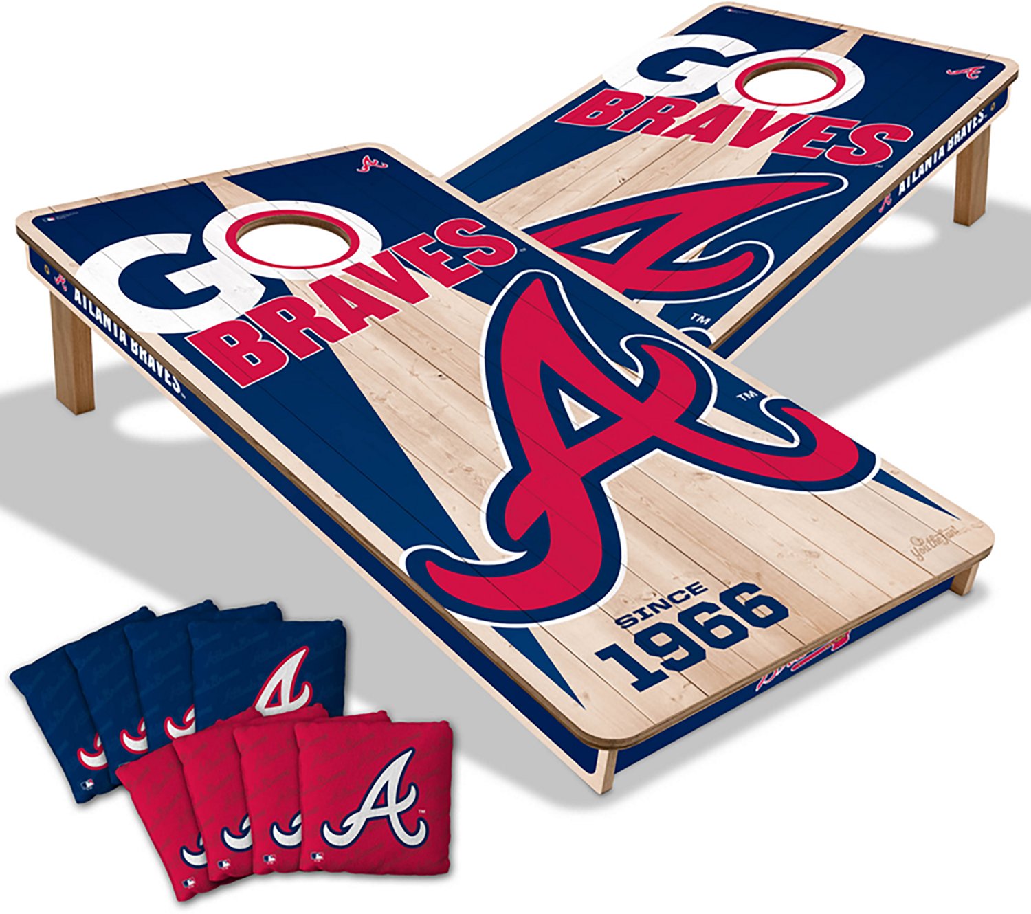 YouTheFan Atlanta Braves 2 ft x 4 ft Solid Wood Cornhole Set