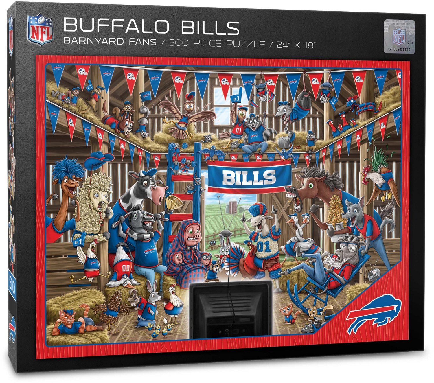 Have some barnyard fun and support the Bills when you put together the YouTheFan Buffalo Bills Barnyard Fans 500-Piece Puzzle. This puzzle has a barnyard design with all of the animals cheering and watching your team play to express your fandom in a unique way. This puzzle measures 18 inches x 24 inches when completed.