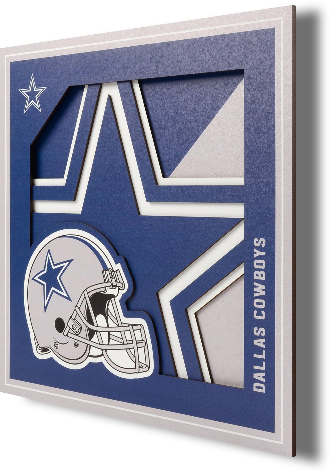 Put team pride on display in your home gym, office or sport cave with the YouTheFan Dallas Cowboys 3-D Logo Series 12 in x 12 in Wall Art. This ready-to-hang wall decor is made with multiple stacked layers of MDF, creating a 3-D effect that makes your team's logo pop. A "floating" mount stands out from the wall for extra dimension.