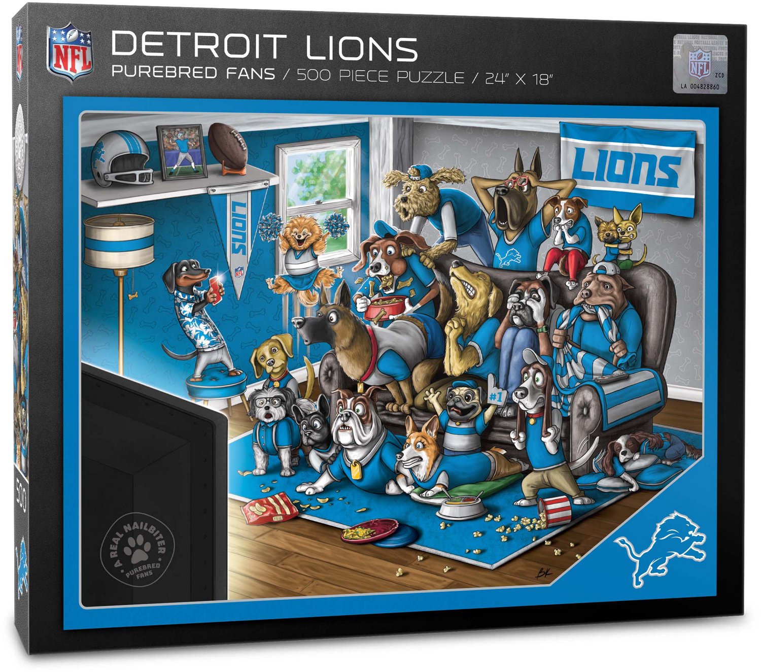 Challenge yourself to a win with the YouTheFan Detroit Lions Purebred Fans 500 Piece Puzzle. The cardboard material offers lasting use, while the fun dog-themed design displays your Lions pride.
