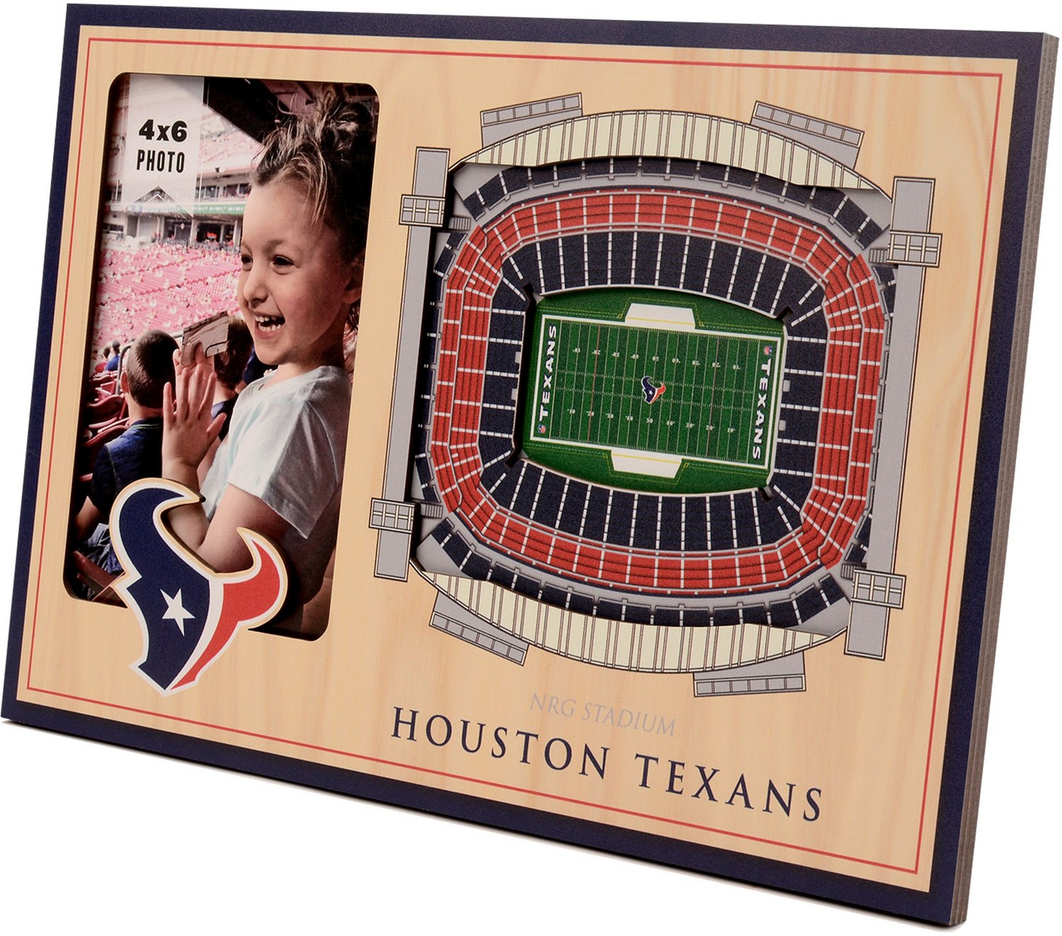 Display your favorite photo in the YouTheFan Houston Texans 3-D Stadium Views Picture Frame. The handcrafted frame is made up of multiple layers to create a 3-D effect that’s sure to pop on your desk, shelf or table. With official team graphics and colors, this picture frame is a must-have for any Texans fan.