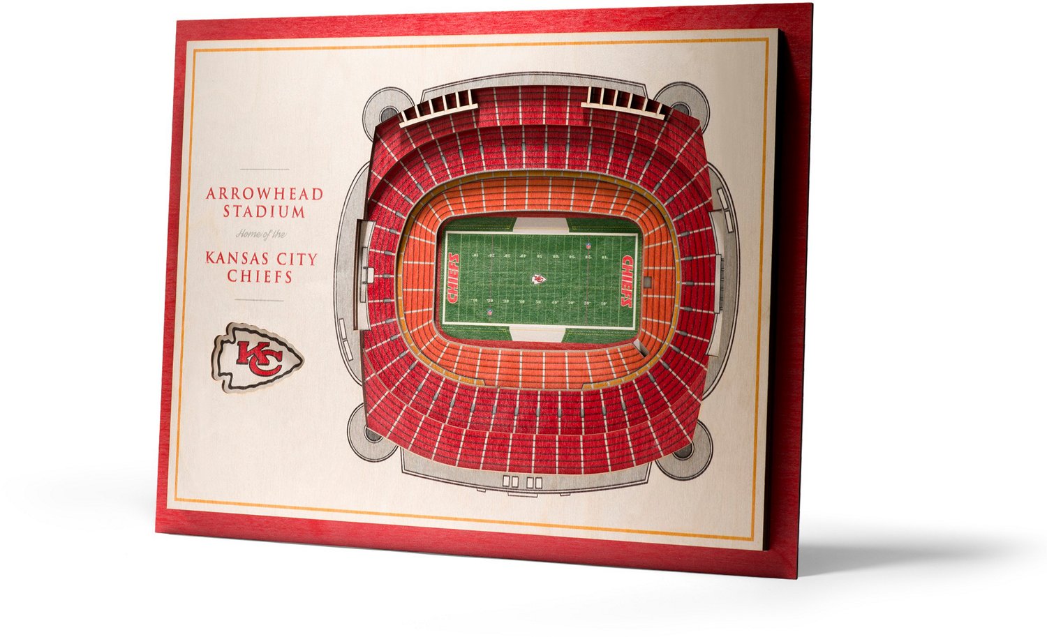 Show off your love for your team at home or in the office with the YouTheFan Kansas City Chiefs 5-Layer StadiumViews 3-D Wall Art. A 3-dimensional stadium design and team color edging display your fan status. Thanks to a pre-cut notch on the back, hanging your artwork is quick and easy.