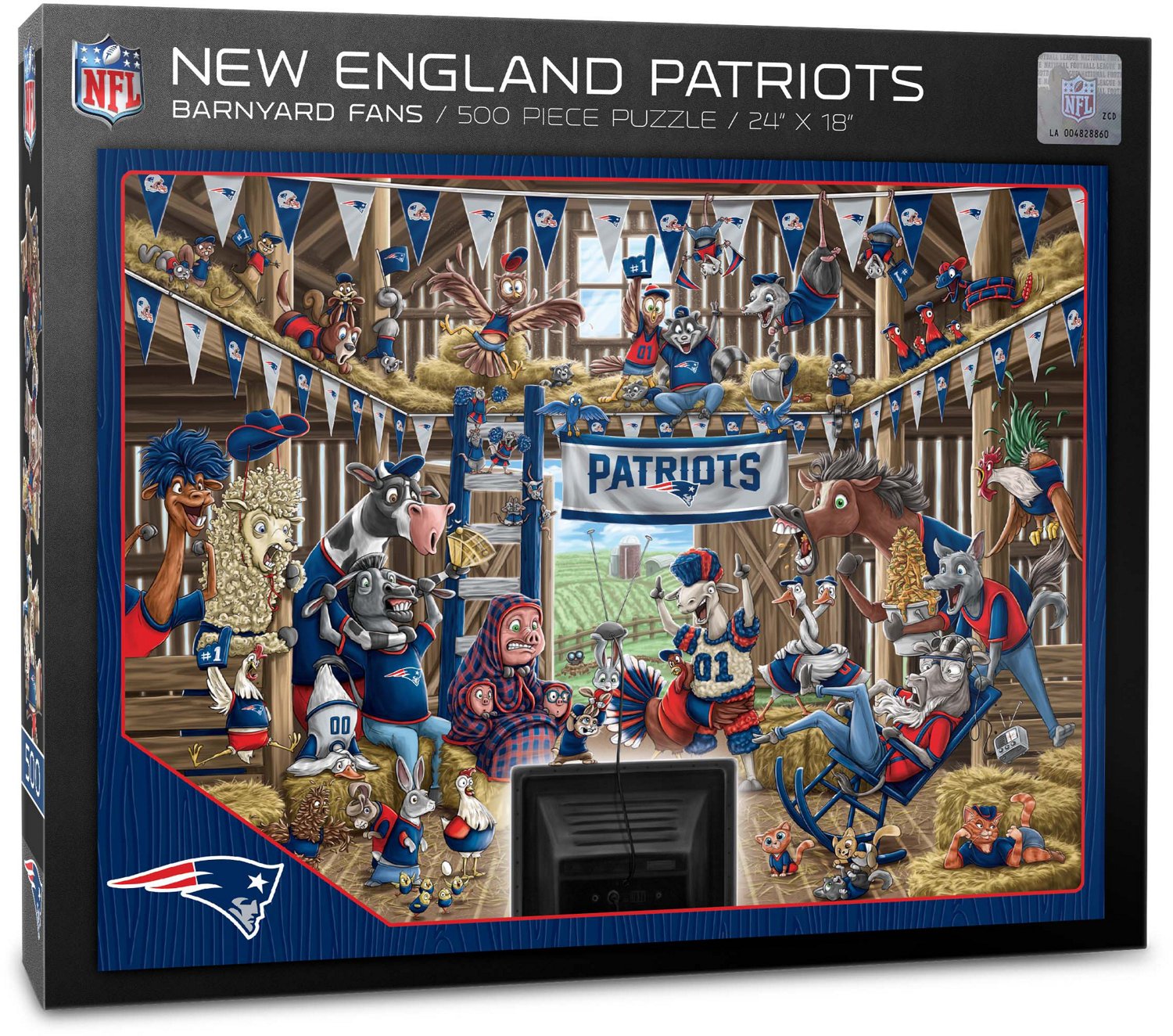 Have some barnyard fun and support the Patriots when you put together the YouTheFan New England Patriots Barnyard Fans 500-Piece Puzzle. This puzzle has a barnyard design with all of the animals cheering and watching your team play to express your fandom in a unique way. This puzzle measures 18 inches x 24 inches when completed.