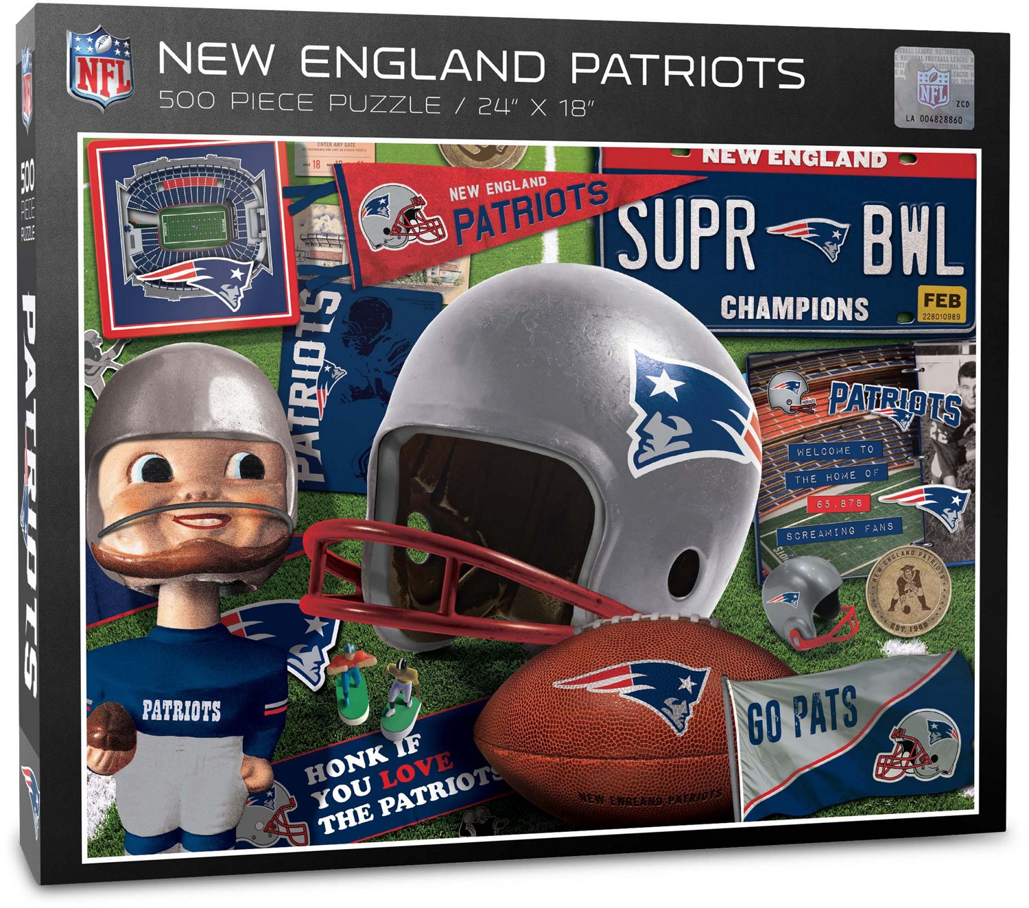 Celebrate the history of the Pats with the YouTheFan New England Patriots Retro Series 500-Piece Puzzle. The 500-piece puzzle features images of bobbleheads, classic items, vintage programs and more, so you can enjoy a glimpse back in time of the Patriots.