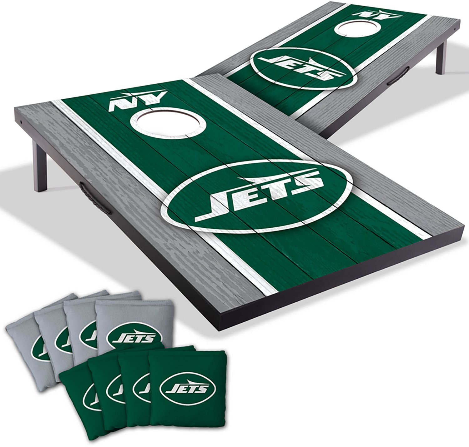 Gear up for your next tailgate with the YouTheFan New York Jets Cornhole Set. The MDF wood construction affords durability, while the PVC laminate finish helps protect against water damage. The team graphics show off your Jets pride.