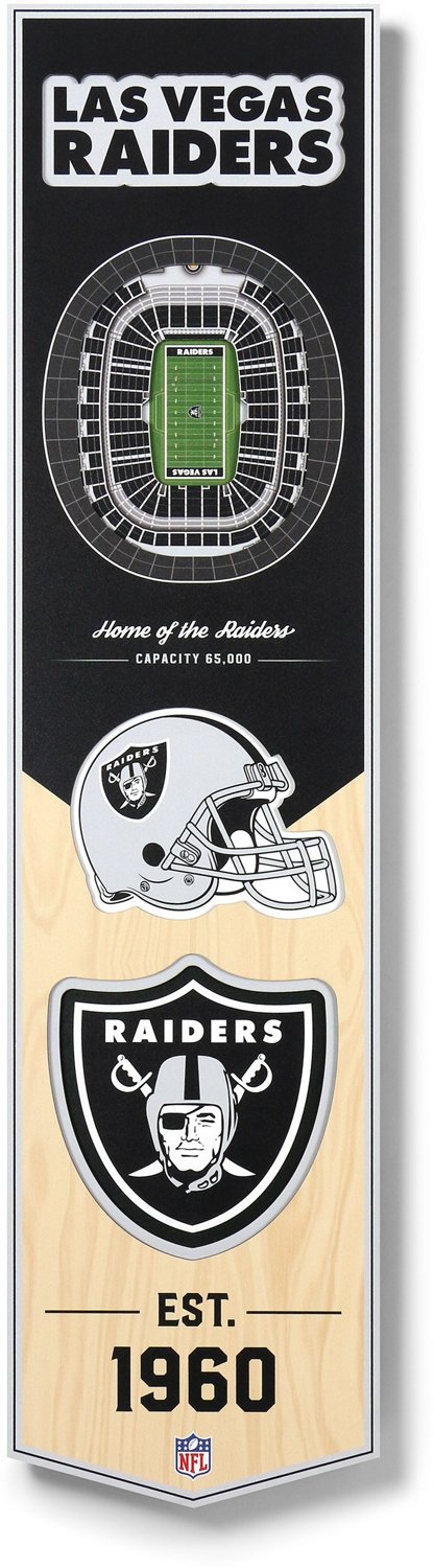 Bring the Raiders stadium into your home by hanging up the YouTheFan Oakland Raiders 8 x 32 in 3-D Stadium Banner. This piece adds dimension, color and style to any wall, and the floating mount design makes the banner pop even more. The official team logo ties it all together, making this sign a nice addition to your collection of fan gear.