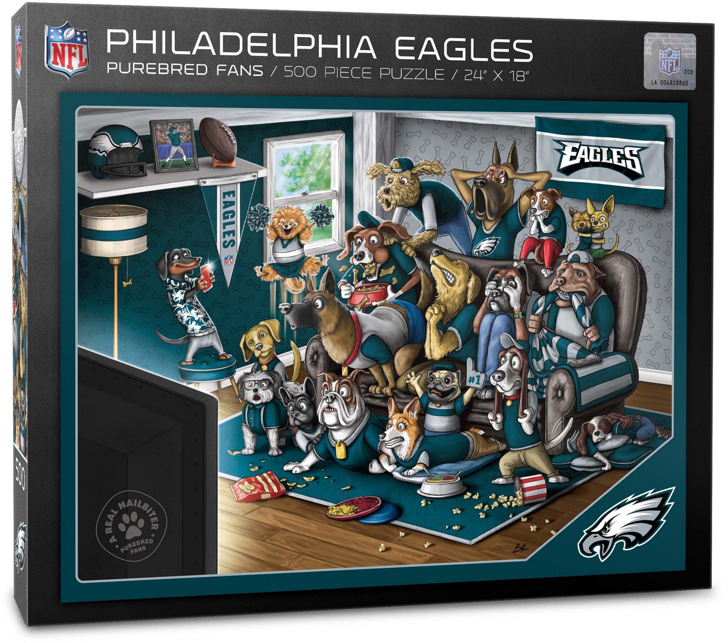 Challenge yourself to a win with the YouTheFan Philadelphia Eagles Purebred Fans 500 Piece Puzzle. The cardboard material offers lasting use, while the fun dog-themed design displays your Eagles pride.