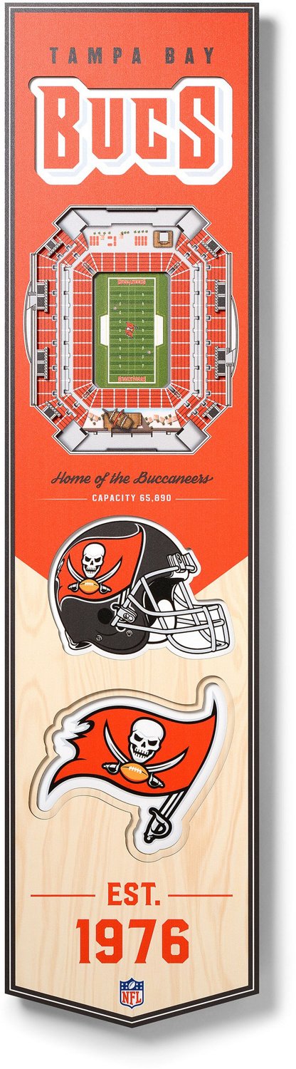 Put your Bucs fan spirit front and center with the YouTheFan Tampa Bay Buccaneers 8" x 32" 3-D Stadium Banner. Ideal for your fan cave, home theater or office, the layered design offers a cool 3-dimensional representation of your favorite team's stadium. A team logo and colors complete the look.