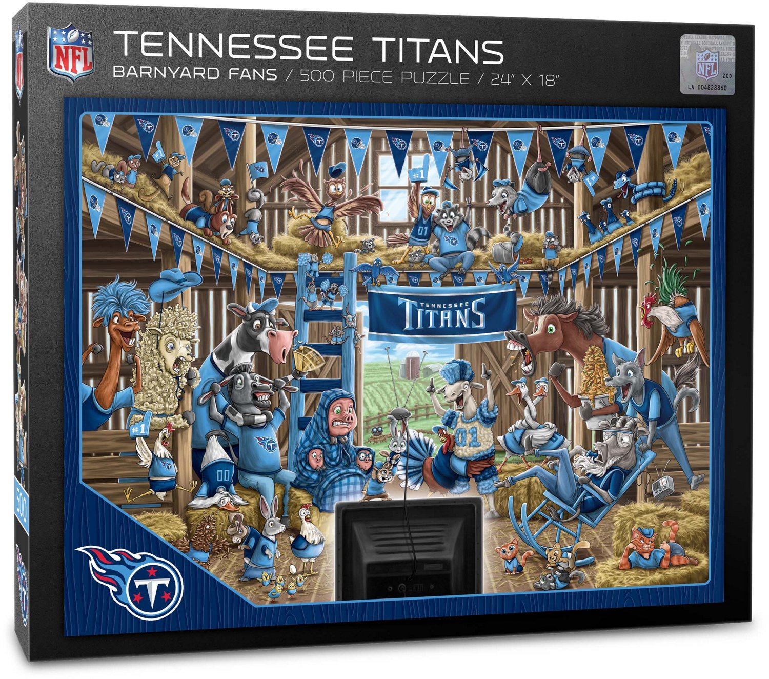 Have some barnyard fun and support the Titans when you put together the YouTheFan Tennessee Titans Barnyard Fans 500-Piece Puzzle. This puzzle has a barnyard design with all of the animals cheering and watching your team play to express your fandom in a unique way. This puzzle measures 18 inches x 24 inches when completed.
