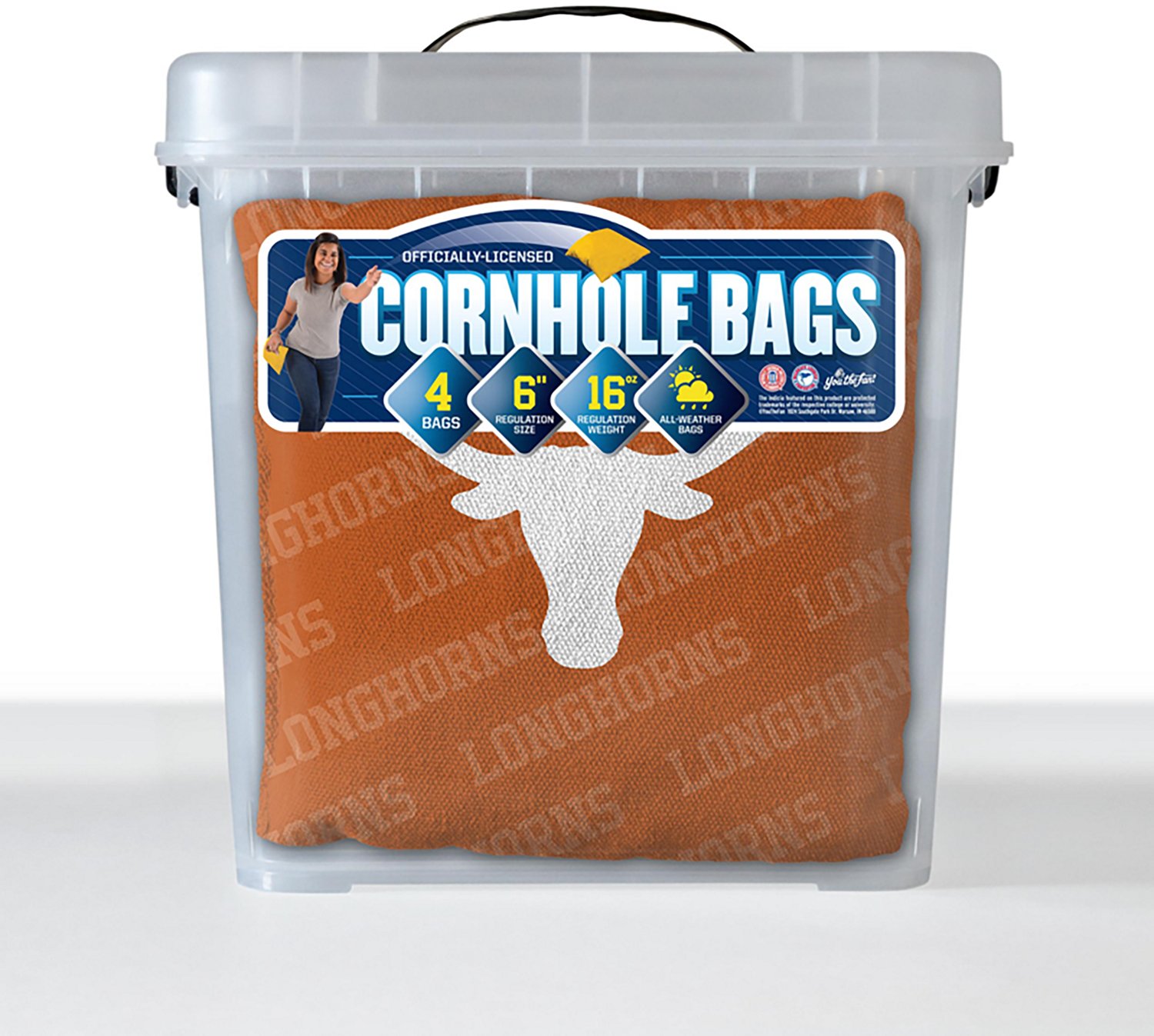Show how passionate you are for your school while competing against family members or friends with the YouTheFan Texas Longhorns Licensed Cornhole Bags 4-pack. The outside of the bags is made with polyester and cotton material to enable frequent gameplay, and the resin beads inside them help preserve their condition. The bags are decorated with team logos and colors to show you're a dedicated fan.