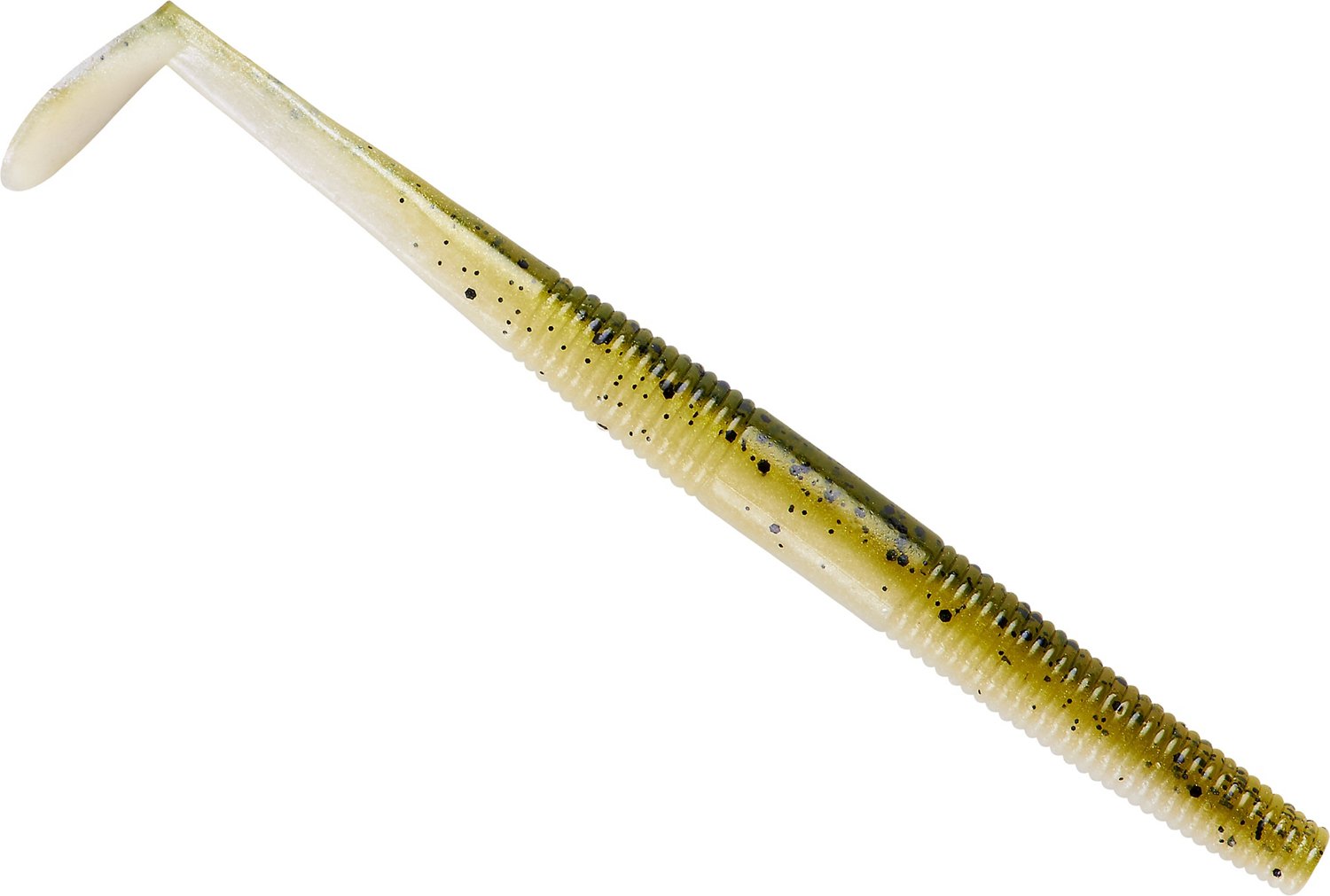 Slow-sinking bait with a swimming-action paddle tail for exaggerated side-to-side action