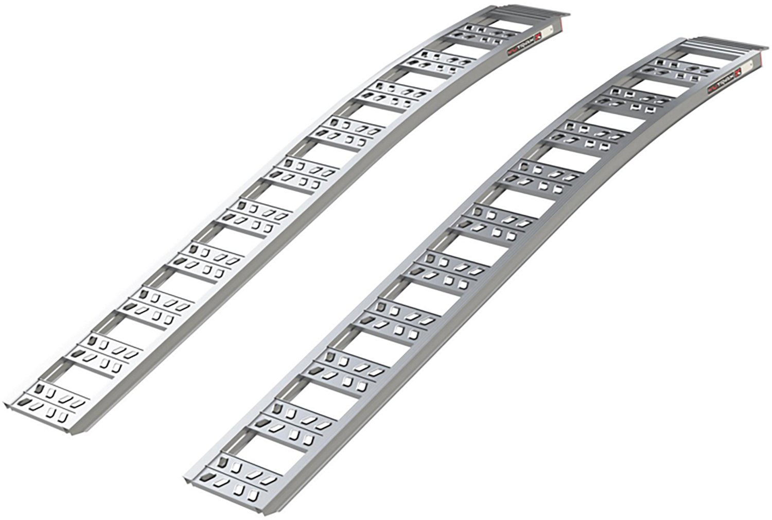 Load ATV, riding lawn mowers and more with the Yutrax 90 in Heavy Duty Arched Ramps. The arched design helps prevent bottoming out, while the wide-rung design allows for smooth loading. The ramps are made of extruded aluminum for durability, and they have an embossed rung design for traction when loading and unloading.
