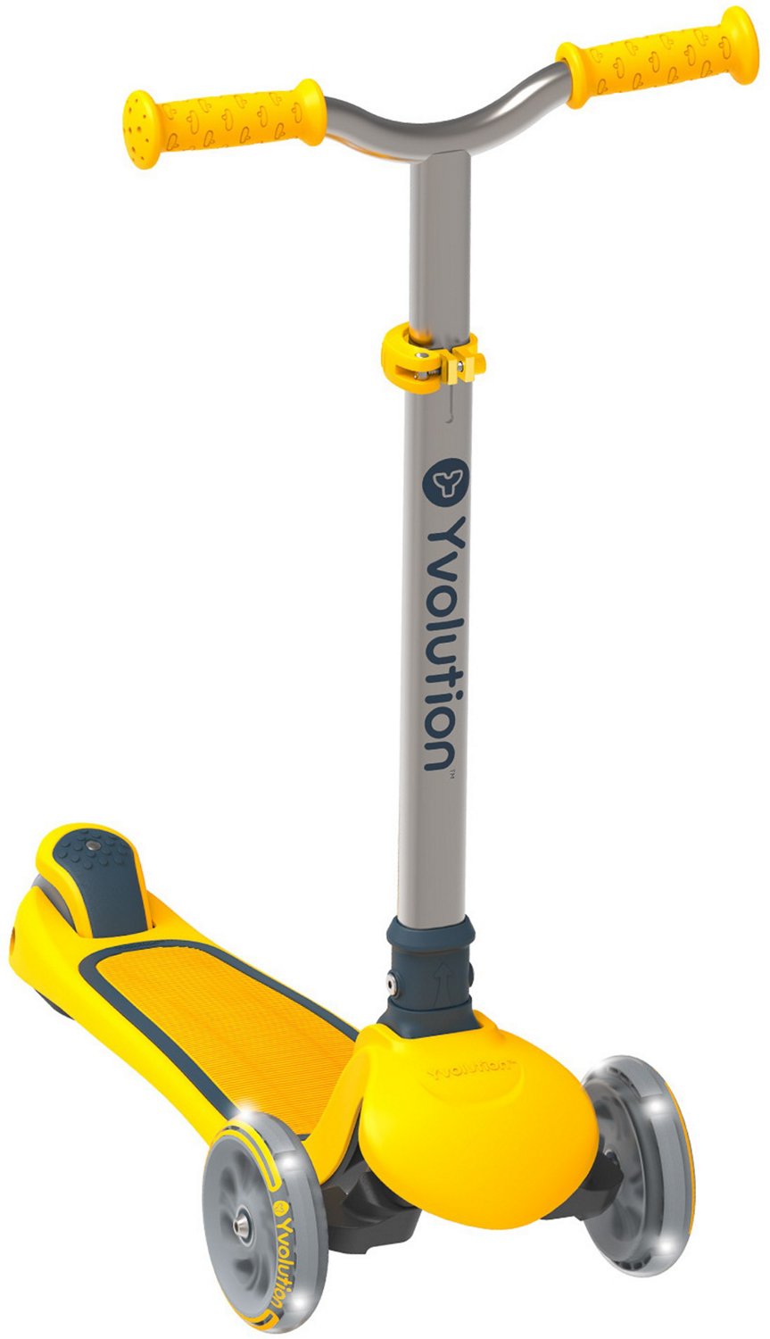 Your child can ride in style on the Yvolution Kids' Glider Air Scooter. This scooter has an adjustable design that grows with your child from 3 to 8 years. The pull and fold system allows the handlebars to fold down for easy transport, while the motion-powered LED light-up wheels provide a fun look.