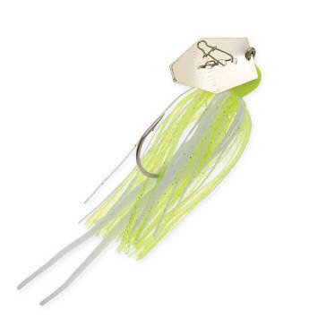 Catch plenty of freshwater fish with the Z-Man Original ChatterBait® 3/8 oz Bladed Jig. The EZ Skirt® and durable ElaZtech® Split-Tail TrailerZ™ provide lifelike movement that mimics a wounded baitfish, and the hex-shaped ChatterBlade® creates sound, vibration and flash to attract bites. Size 2/0 single hook.