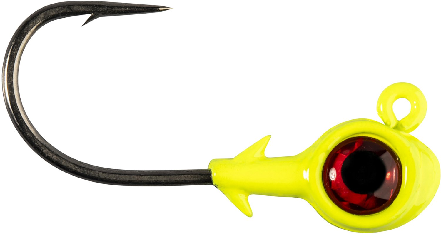 Hunt for trout with the Z-Man Trout Eye X 1/8 oz Jigheads 3-Pack. Oversize 3-D eyes feature Titan Steel (tS) coating which delivers 10 times the saltwater corrosion resistance over black nickel finishes. The Mustad® 2/0 hook with AlphaPoint® 4.8 technology affords extreme sharpness, instant penetration and 10 times the lasting strength of standard needlepoint hooks.