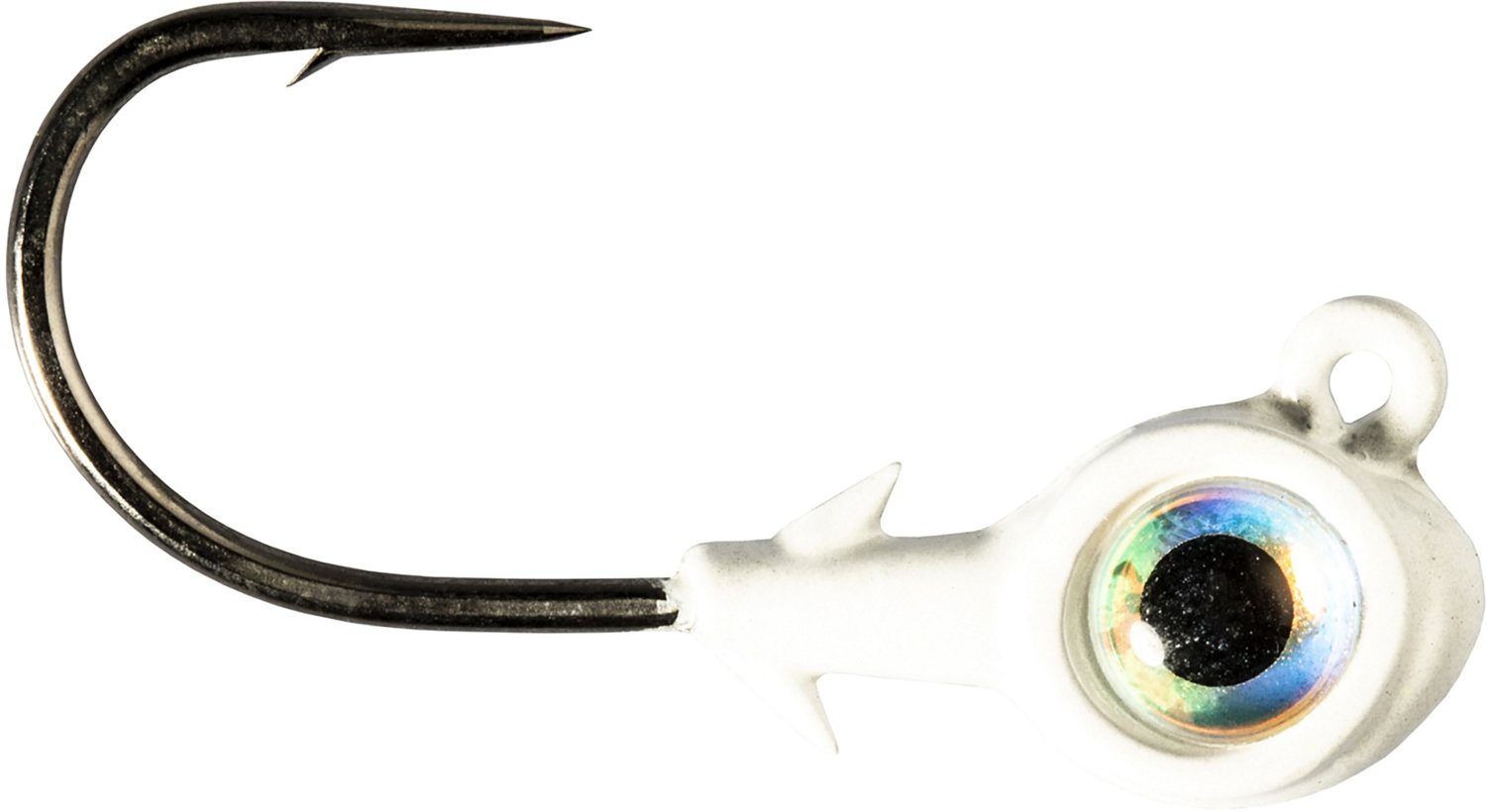 Hunt for trout with the Z-Man Trout Eye X 1/8 oz Jigheads 3-Pack. Oversize 3-D eyes feature Titan Steel (tS) coating which delivers 10 times the saltwater corrosion resistance over black nickel finishes. The Mustad® 2/0 hook with AlphaPoint® 4.8 technology affords extreme sharpness, instant penetration and 10 times the lasting strength of standard needlepoint hooks.