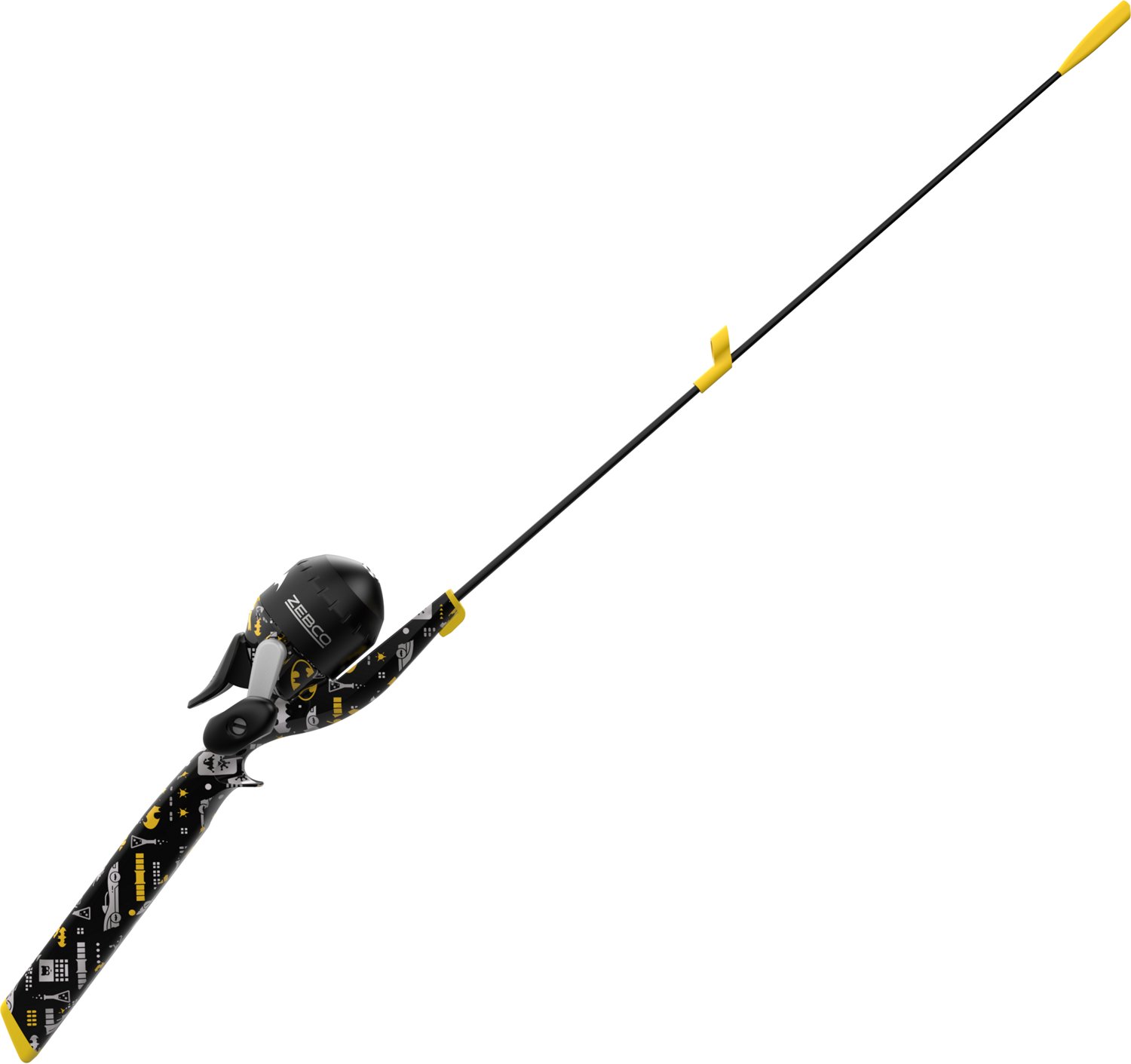 Find success fishing with the Zebco Batman No Tangle Spincast Combo. The fiberglass rod build offers long-lasting dependability, and the ABS grip provides sturdy and comfortable handling. The 1+Tip guides help the line slide smoothly, and the light power with moderate action delivers high-quality fishing.
