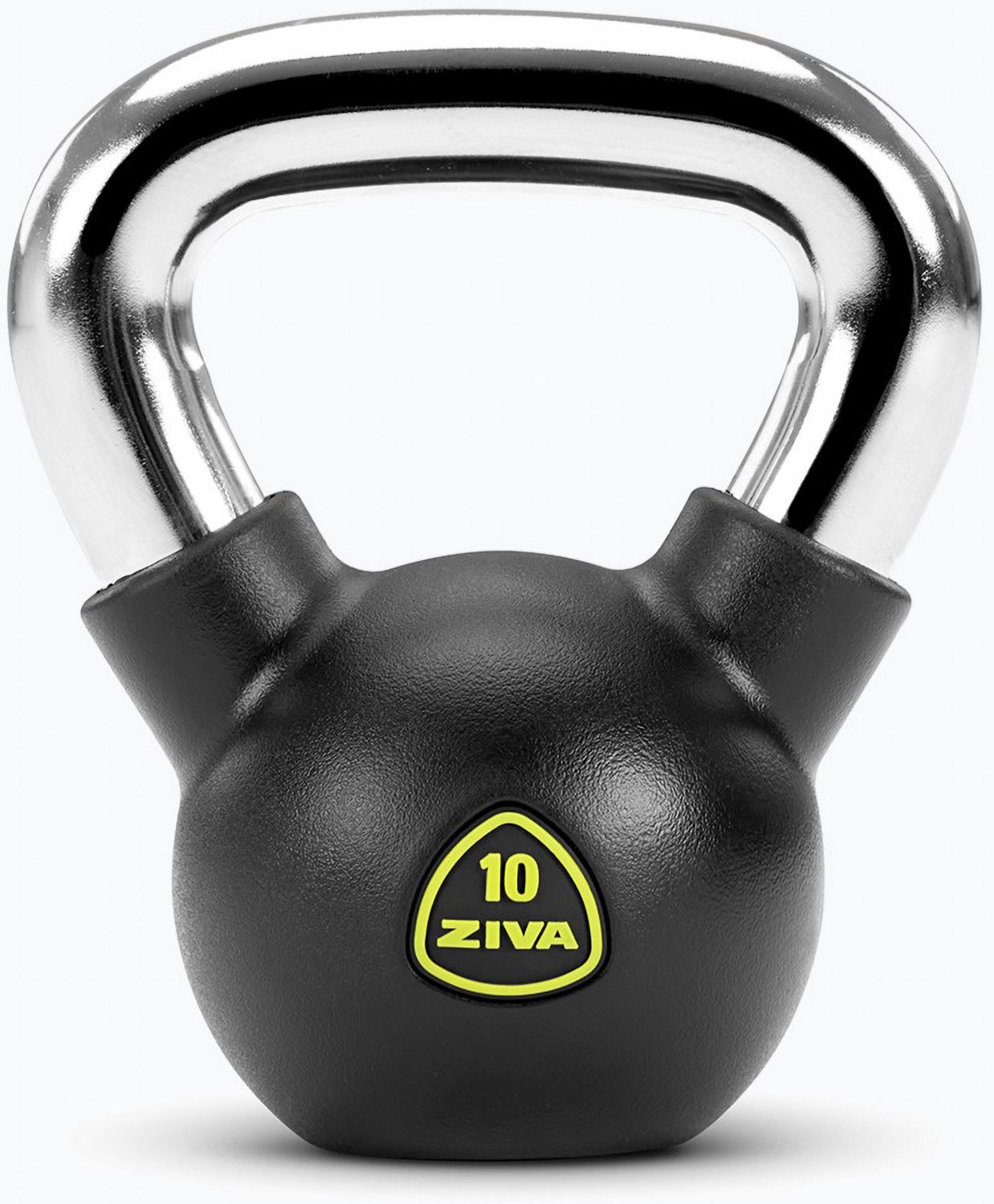 takes this already perfect tool and enhances it with advanced wear, rust, and corrosion-resistant RPU coating that falls more softly than its conventional unadorned counterparts, making it ideal for the home gym. Its ultra-durable chrome grip is less prone to dings and scratches than cast iron or plastic, and is designed without knurling to challenge and strengthen your grip. Iconic, bold styling make our kettlebells gym centerpieces worthy display. The weight numbers are vibrantly marked for easy identification in vibrant ZIVA Yellow that matches perfectly with the surrounding black and chrome. Starting at 10lb and going all the way up to 50lb, the RPU Kettlebell is an ideal tool for high performance, high intensity training.