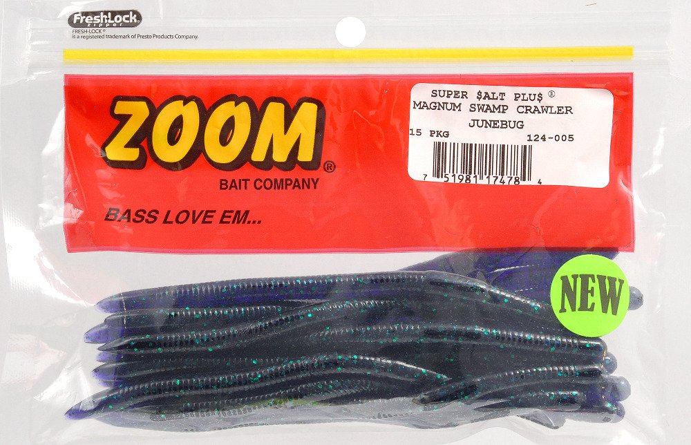 The Zoom 6-1/2" Mag Swamp Crawlers 15-Pack attract bass and other freshwater fish. They are great for Texas or Carolina rigging. Also great on shaky head, wacky style or weightless jigs or a drop shot.