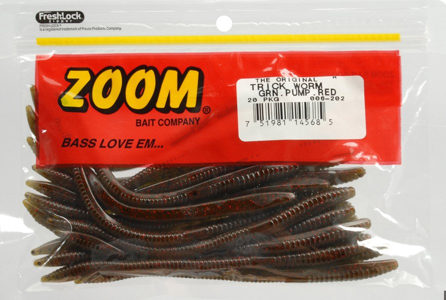 Draw the attention of freshwater bass with the Zoom 6" Trick Worms 20-Pack. These trick worms are constructed from soft plastic for a lifelike appearance. Can be straight, Tex-posed, wacky or Carolina rigged.