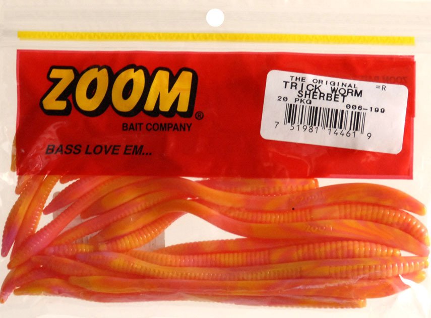 Draw the attention of freshwater bass with the Zoom 6" Trick Worms 20-Pack. These trick worms are constructed from soft plastic for a lifelike appearance. Can be straight, Tex-posed, wacky or Carolina rigged.