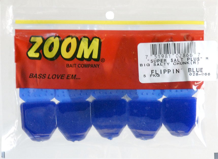 Use the Zoom Big Salty Chunks 3-1/4" Baits 5-Pack in heavy cover. These baits feature tough plastic construction and are great to use as a trailer attached to the back of a skirted jig. Can also be used on a spinnerbait.