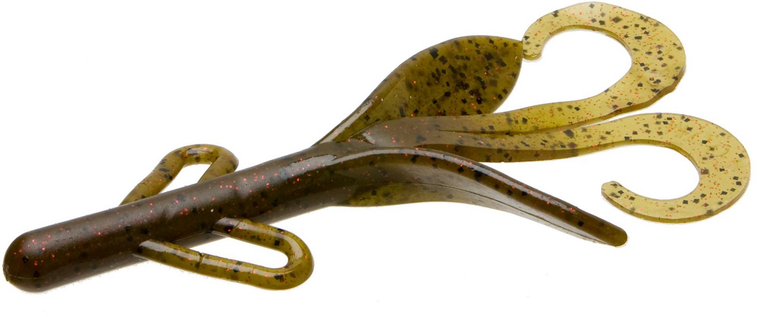 Take the Zoom Brush Hog 7" Creatures 8-Pack with you on your next freshwater bass fishing trip. These baits are made of soft, salty plastic to stand up to repeated bites. Wing-like side features and double tails.
