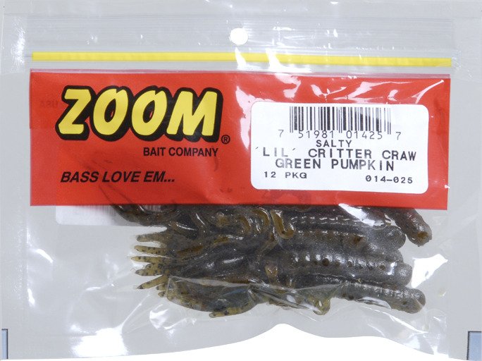 The Zoom Lil Critter Craw 3-1/4" Trailers 12-Pack are great soft baits for your next cast. These baits feature soft plastic construction that provides a lifelike appearance. Can be Texas rigged, pitched, flipped or rigged as a jig trailer.