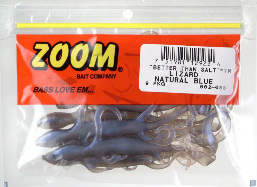 Entice freshwater bass to bite with the Zoom Super Salt Plus Lizards 9-Pack. These lizards feature soft plastic construction for durability and lifelike action, and they can be Carolina rigged in the spring or Texas rigged in the summer.