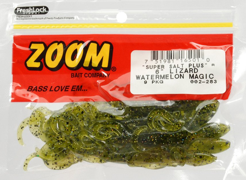 Entice freshwater bass to bite with the Zoom Super Salt Plus Lizards 9-Pack. These lizards feature soft plastic construction for durability and lifelike action, and they can be Carolina rigged in the spring or Texas rigged in the summer.