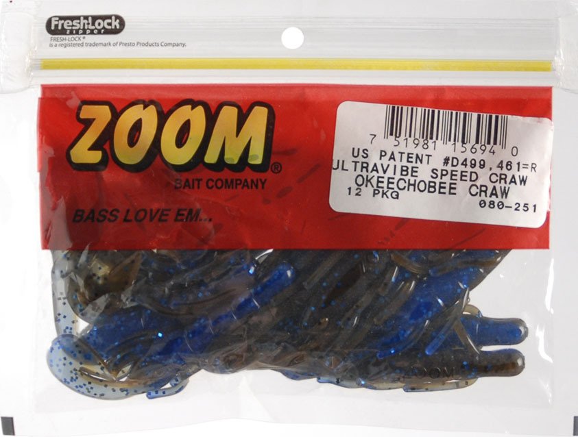 The salt-impregnated plastic construction of the Zoom Ultra Vibe Speed Craws is designed to draw freshwater bass to your line. A small profile and great leg action help the craws flip thick mats, while the high-action tentacles flutter on the fall to help bring fish out of deep cover.