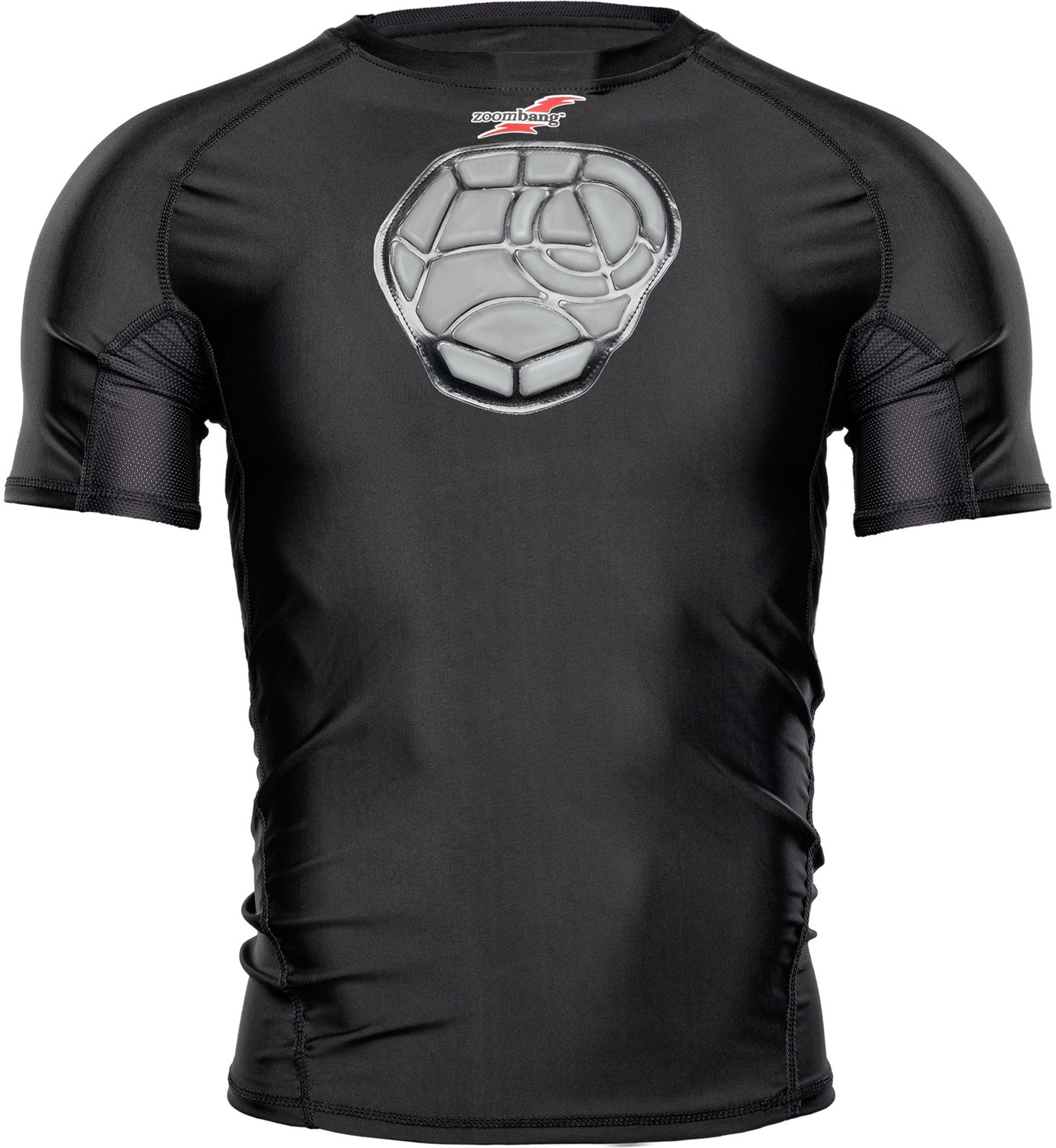 Help keep your slugger safe on the field with this Zoombang Youth Baseball Chest Short-Sleeve Shirt. It is made of 90% polyester and 10% spandex for a breathable and flexible fit that molds to your body, and the proprietary PolyShield on the chest helps reduce the risk of chest, sternum and heart injuries.