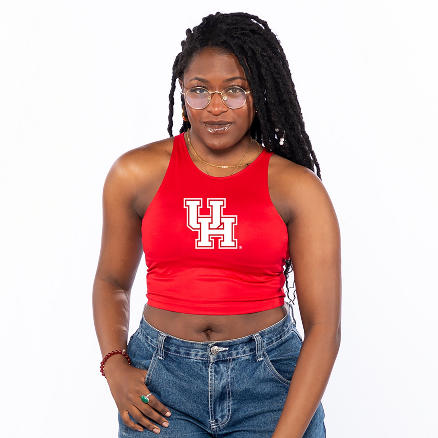 Root for your favorite team when you wear the ZooZatz Women's Houston Cougars Logo Tank Top. It is made of 87% polyester and 13% spandex. The scoop neck creates a flattering silhouette, and its center chest interlock Houston Texans logo graphic shows off your team spirit. The tight fit allow for easy layering.