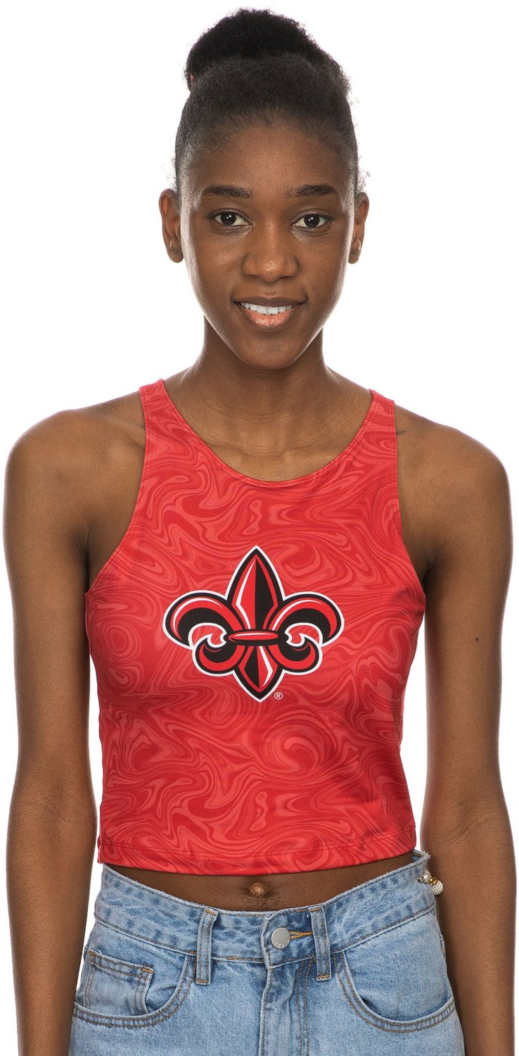ZooZatz Women's University of Louisiana at Lafayette First Down Swirl Crop Tank Top