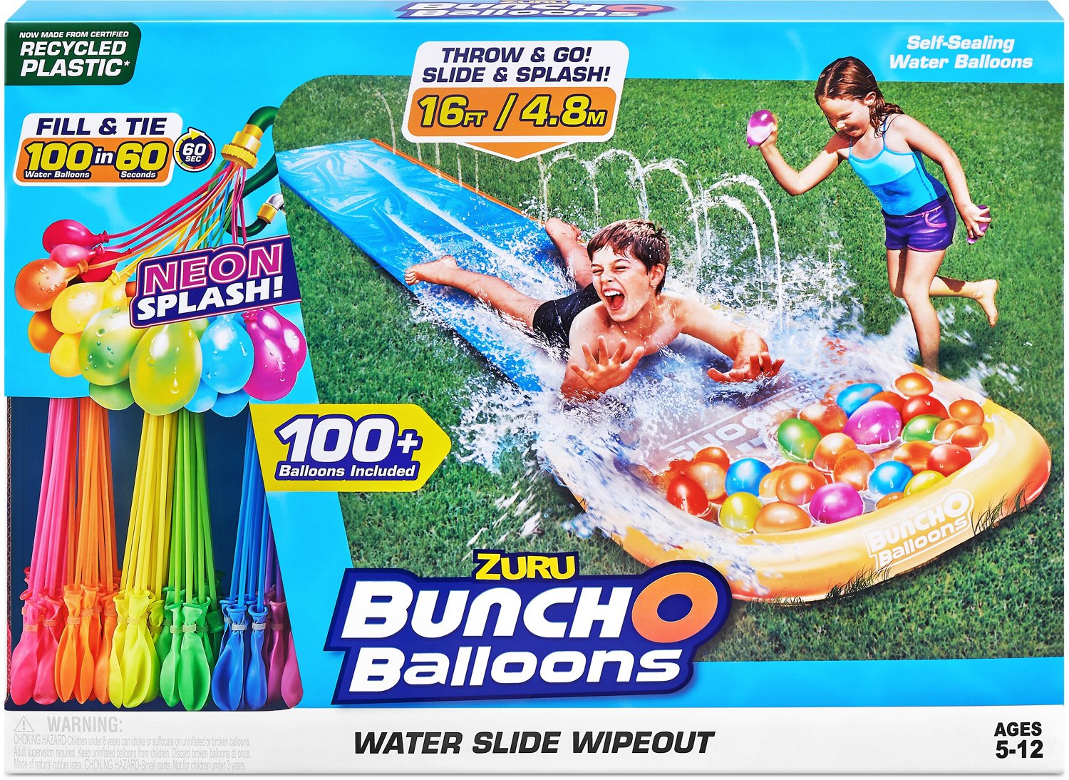 Enjoy fun in the sun when you bring out the Zuru Water Slide and Bunch O Balloons 3-Pack. This set comes with a single lane water slide and 3 bunches of Bunch O Balloons. The Bunch O Balloons design allows for quick filling of multiple water balloons at once for convenience, while the natural rubber latex balloons come in assorted neon colors to add a fun, vibrant appearance to playtime.
